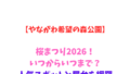 例年、4月中旬から下旬にかけてがソメイヨシノとしだれ桜の競演を楽しめるベストシーズンです。2026年は例年より数日早い開花が予想されており、4月第2週の週末が最大のハイライトとなるでしょう。