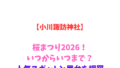 桜まつり期間:2026年4月上旬~4月中旬(開花状況により変動)