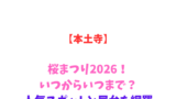 特にお昼前後は、桜のトンネル内や芝生エリアが多くの観光客で埋め尽くされます。また、ライトアップが始まる18:00以降も、夜桜を目当てにした人々が再び増加します。