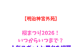 2026年の根津神社の桜は、3月20日(金・祝)頃に開花し、3月28日(土)前後に満開を迎えると予想されています。