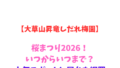 2026年2月中旬 〜 3月上旬(気候により変動あり)