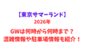 大晦日は20:00頃に閉園するなど、日によって変動があるため、公式サイトのカレンダーを必ず確認しましょう。